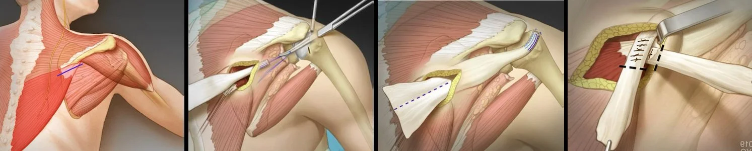 - Reconstrução da Cápsula Superior: Utilizada para restaurar a estabilidade superior do ombro em pacientes com lesões graves do manguito rotador. Usada nos pacientes que não tenham déficit significativo de força de rotação externa.